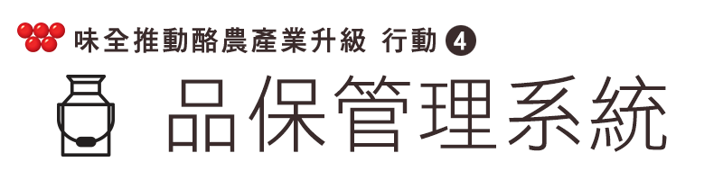 在乳品生產線上,味全已獲得國際公認最嚴謹的SQF(Safe Quality Food;食品安全品質標準)驗證。從牧場到工廠、工廠到賣場,味全進行全面品保管理系統升級,每一瓶林鳳營鮮乳均需通過七大流程品管系統管控,包含原料飼料系統、飼養管理系統、產乳管理系統、製程品保系統、庫存管理系統、物流系統、流通品保系統等,乳品質則需經過1098道的項檢驗項目,才能在賣場貨架上販售。